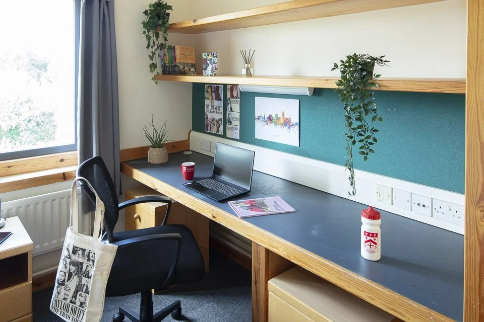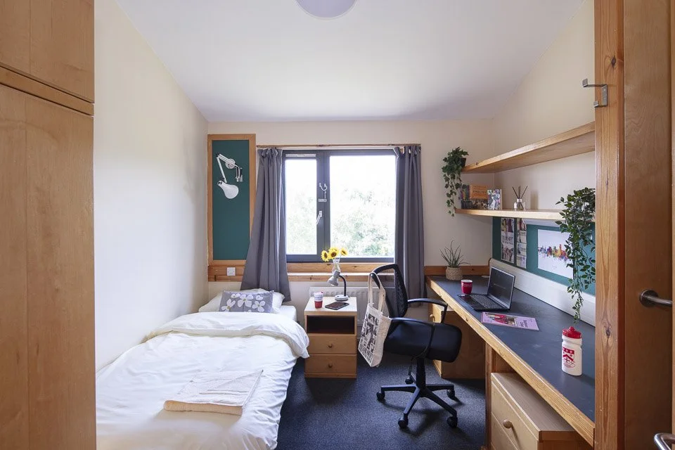 College Rooms have a wardrobe, desk (with drawers), and usually, a bedside table for storage. However, you can fit additional storage boxes under the beds.